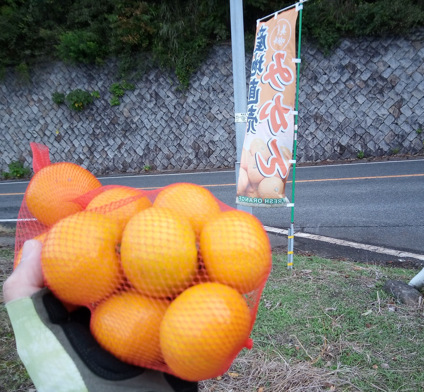 彡(^)(゚) < で、小豆島のみかんがオンシーズンらしくて産直無人販売所があるから、寄ってみたら何とこれで100円や!